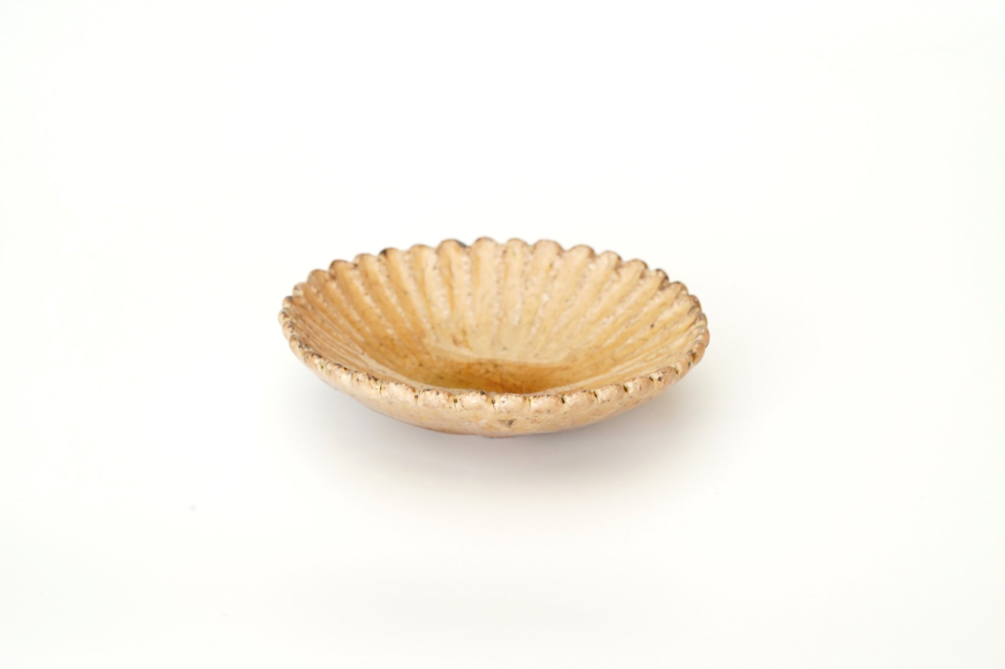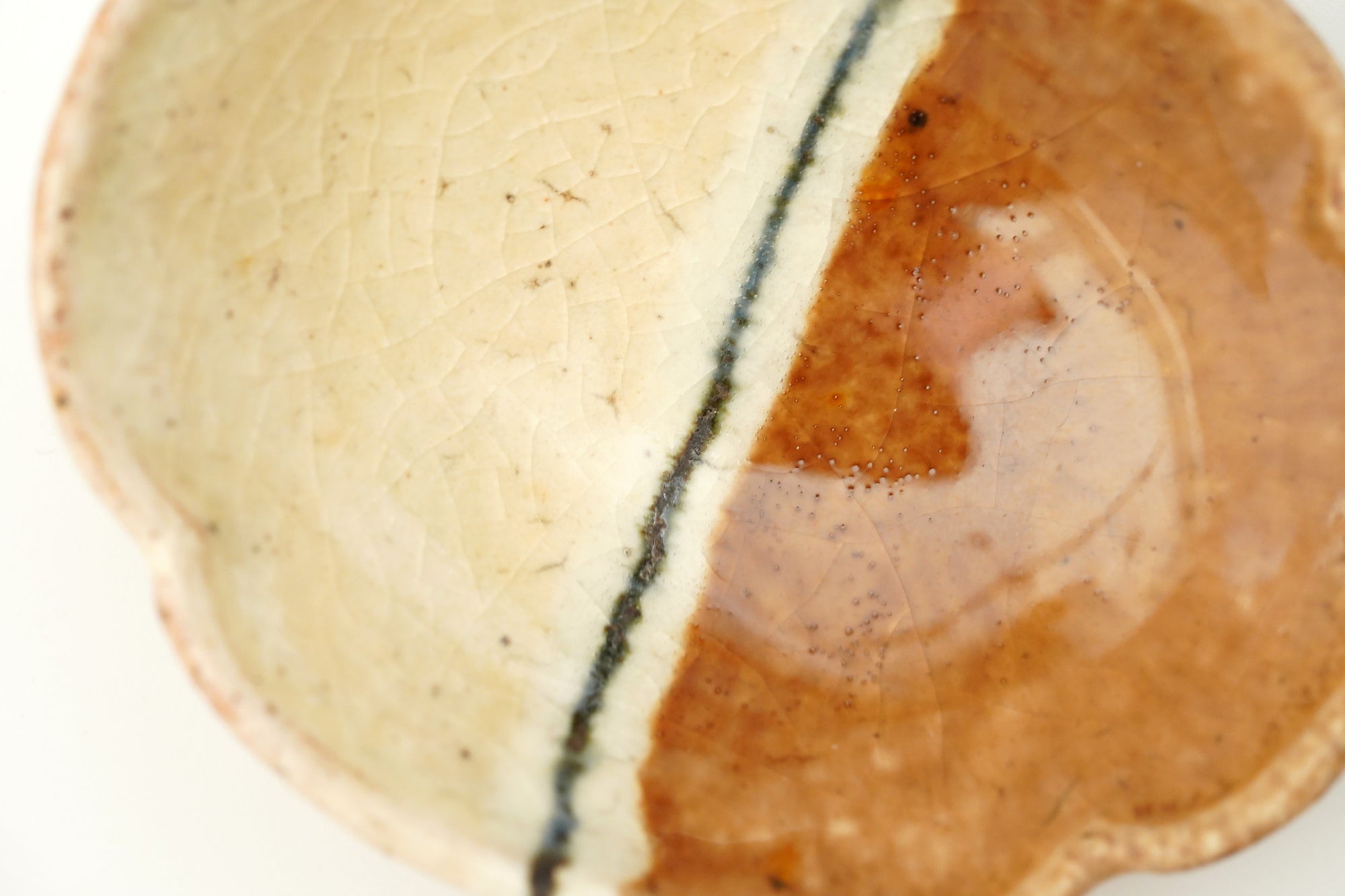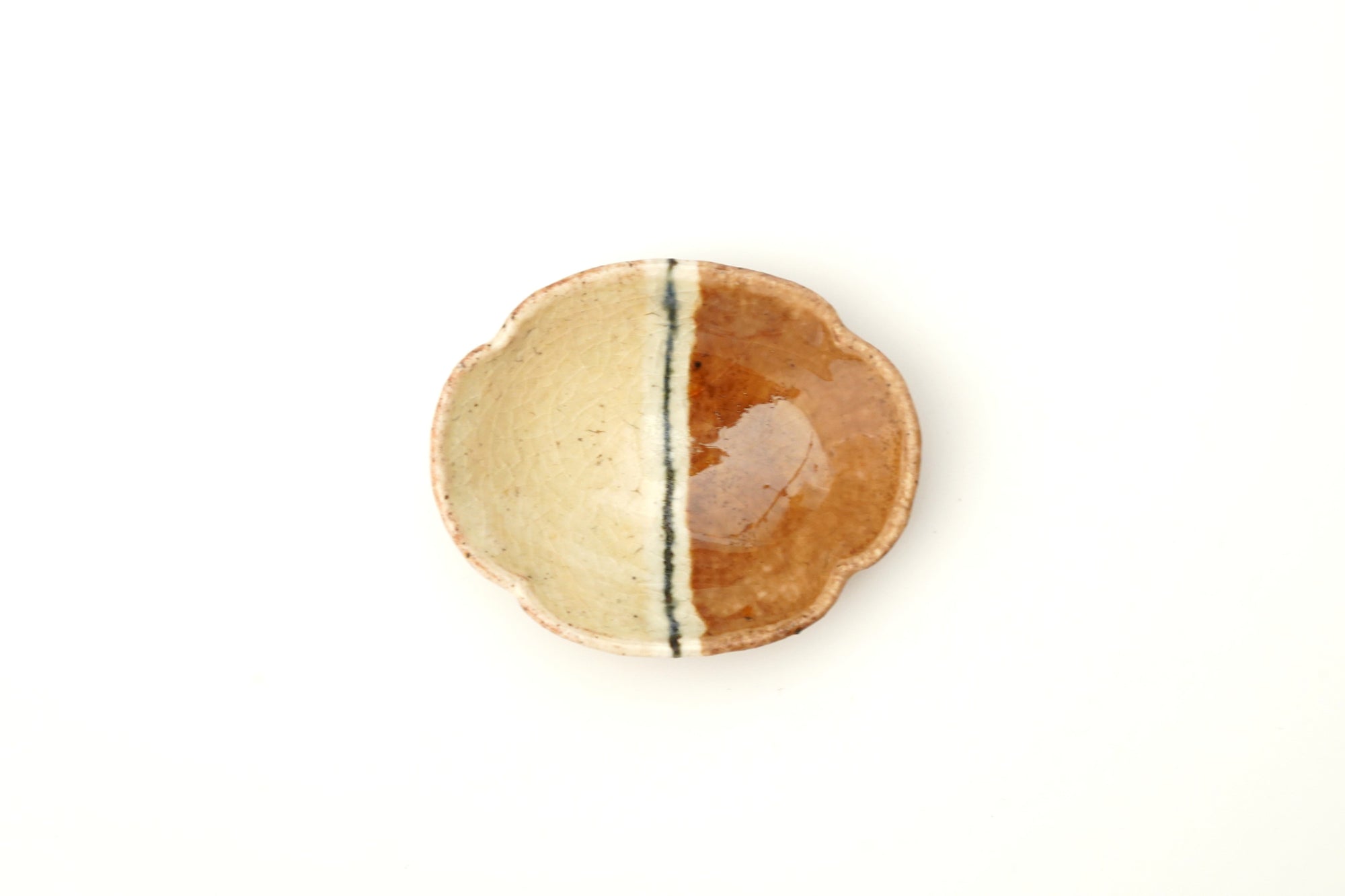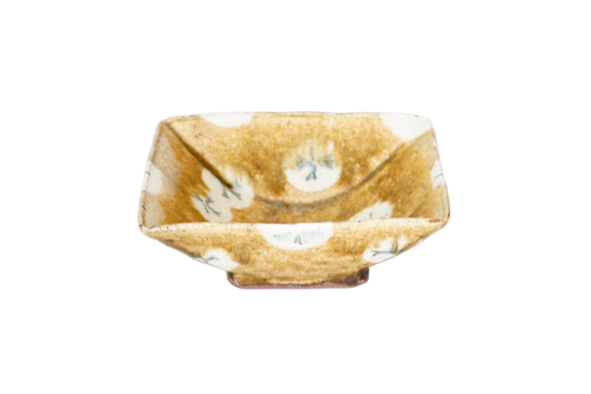 【杉本太郎】5.5寸船形四方鉢 金茶花散らし