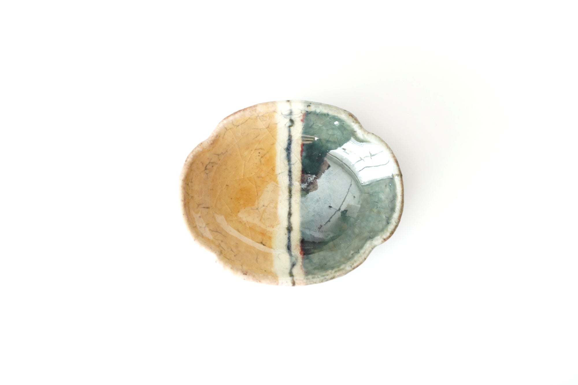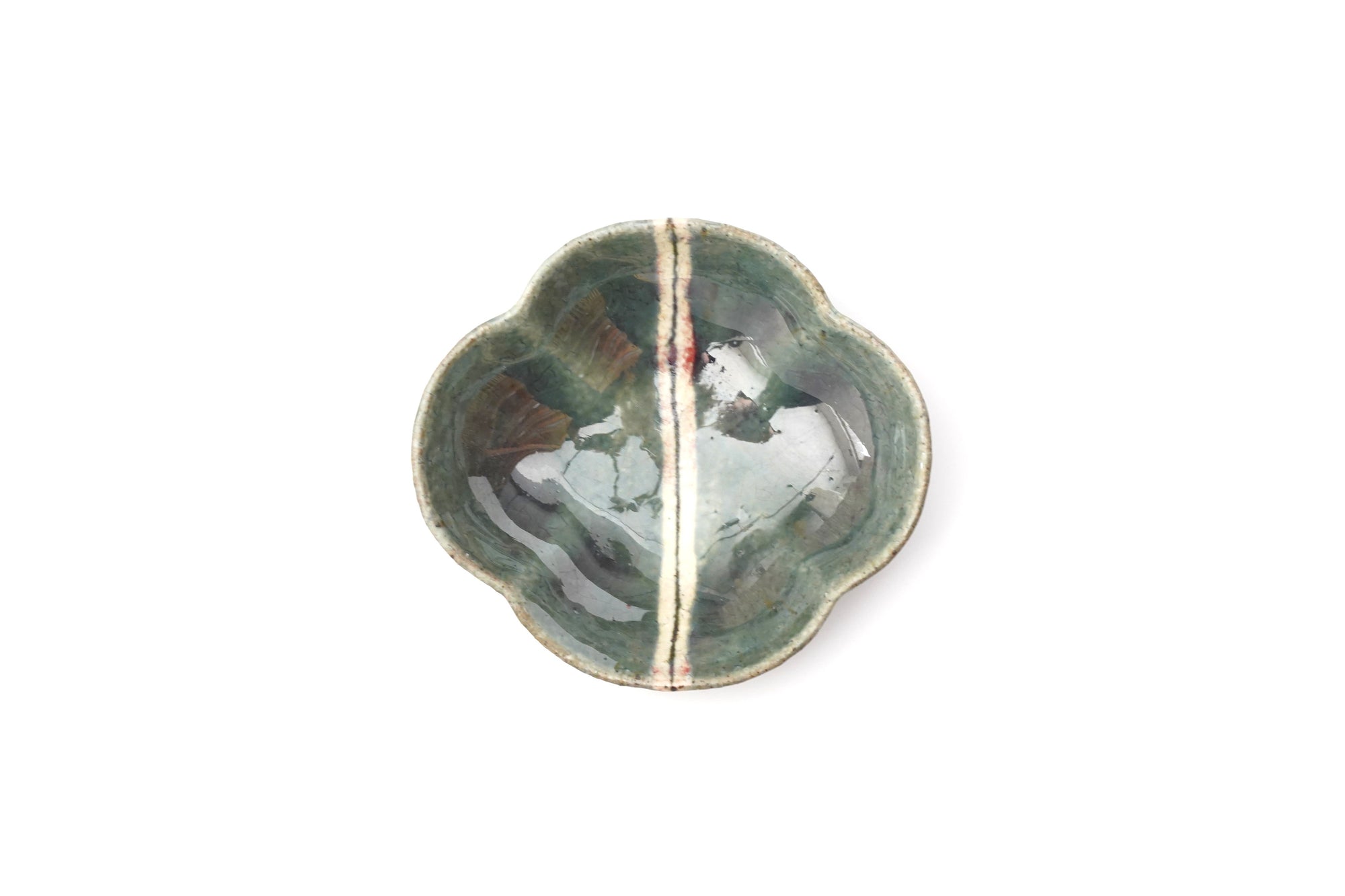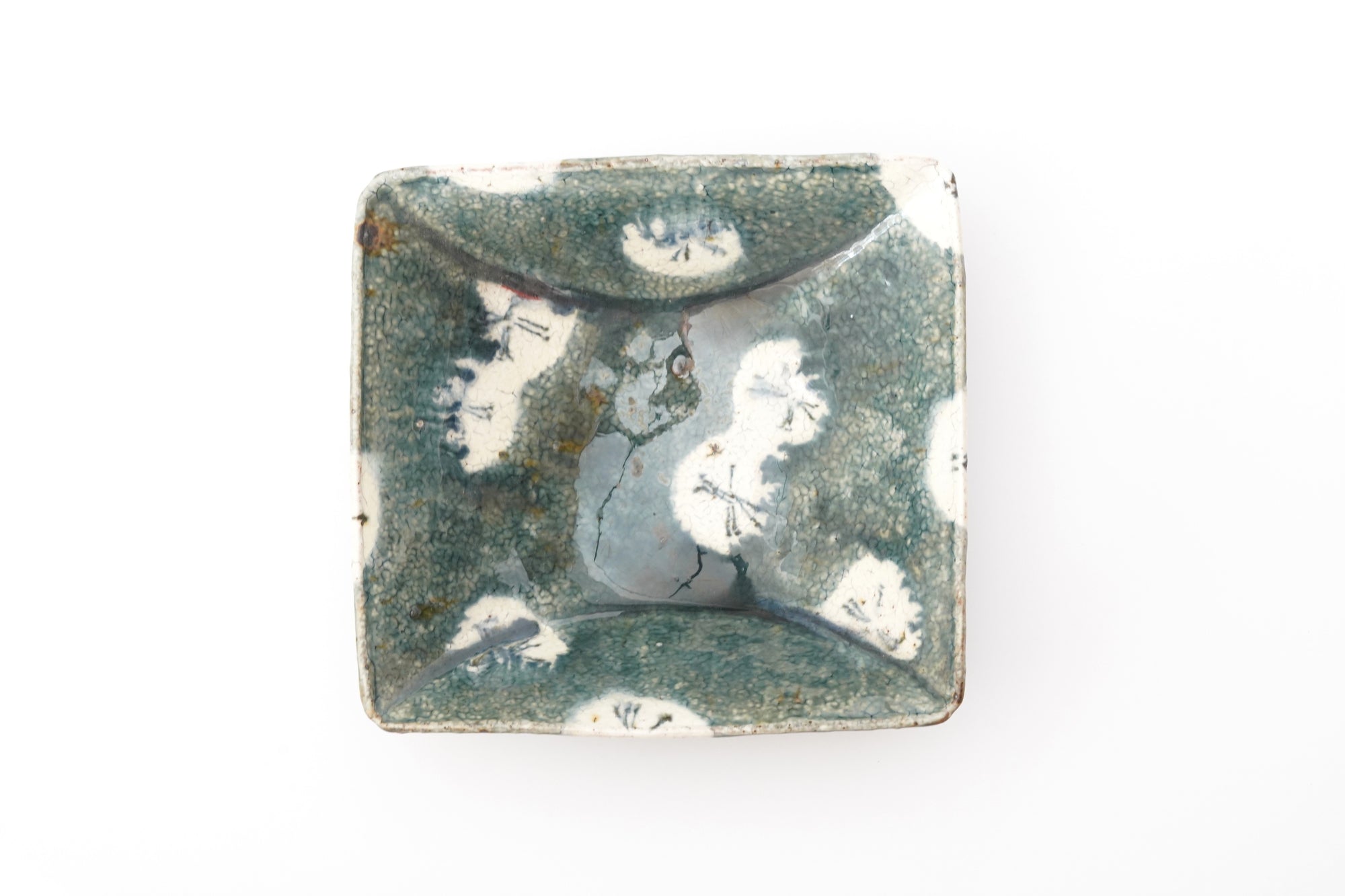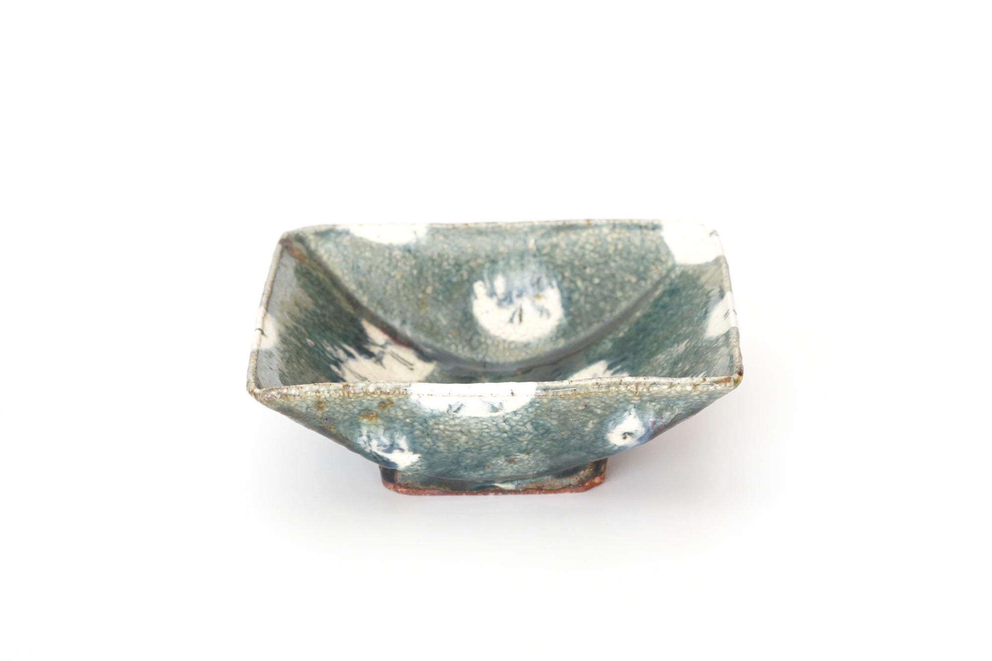 【杉本太郎】5.5寸船形四方鉢 緑花散らし