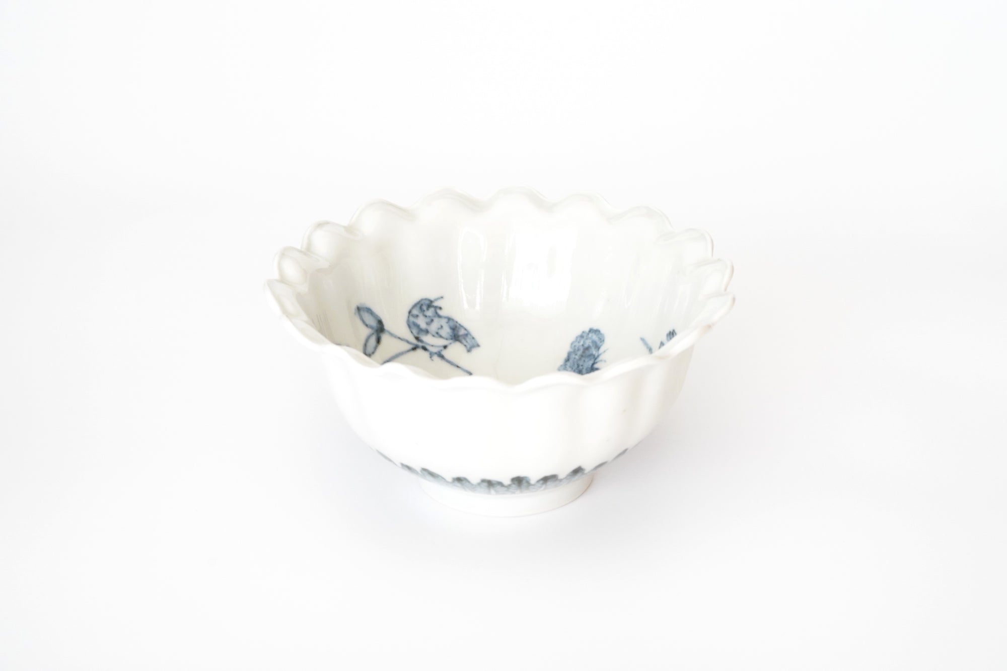 【杉本太郎】染付5.5寸貝縁鉢 鳥文