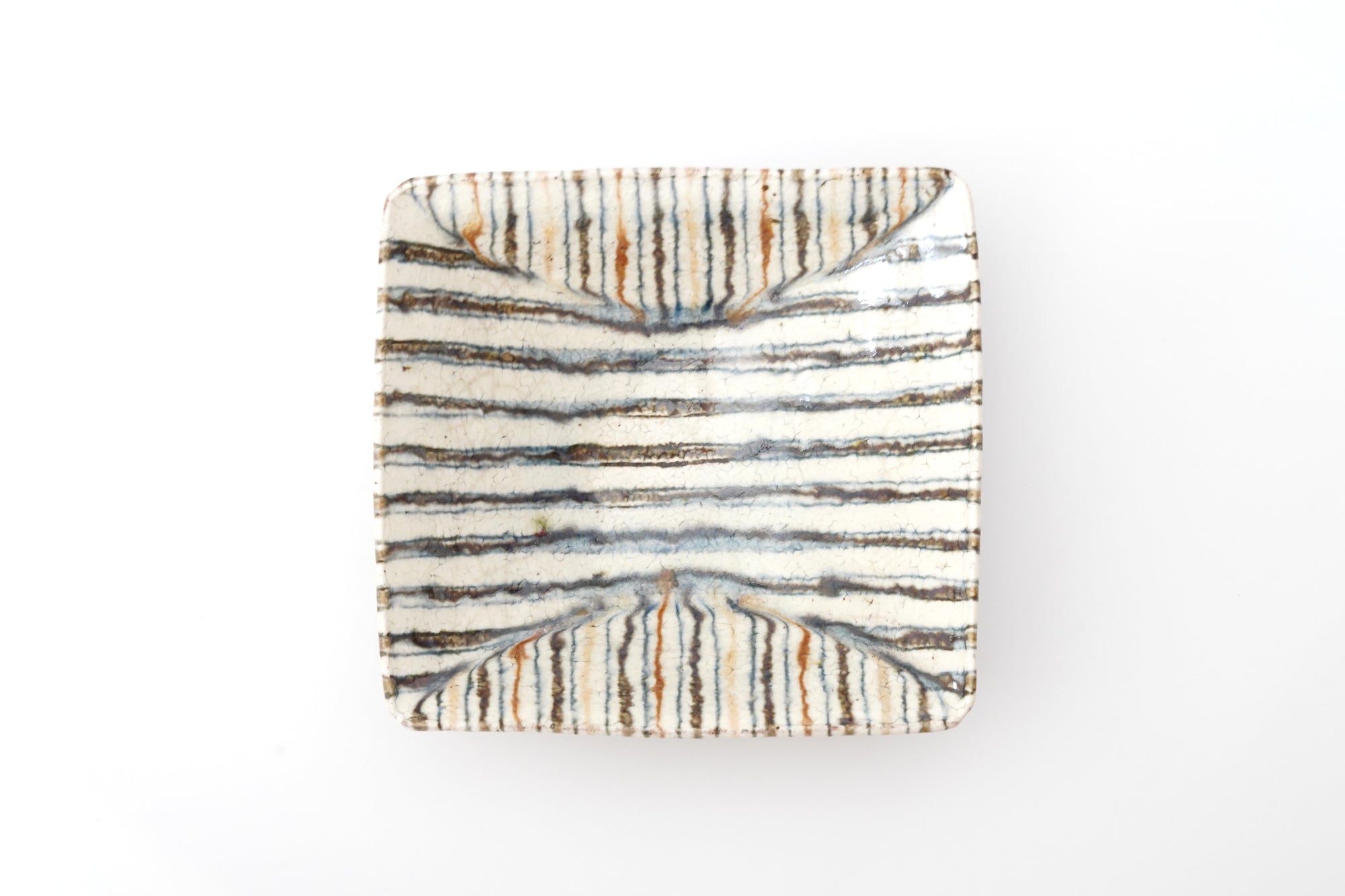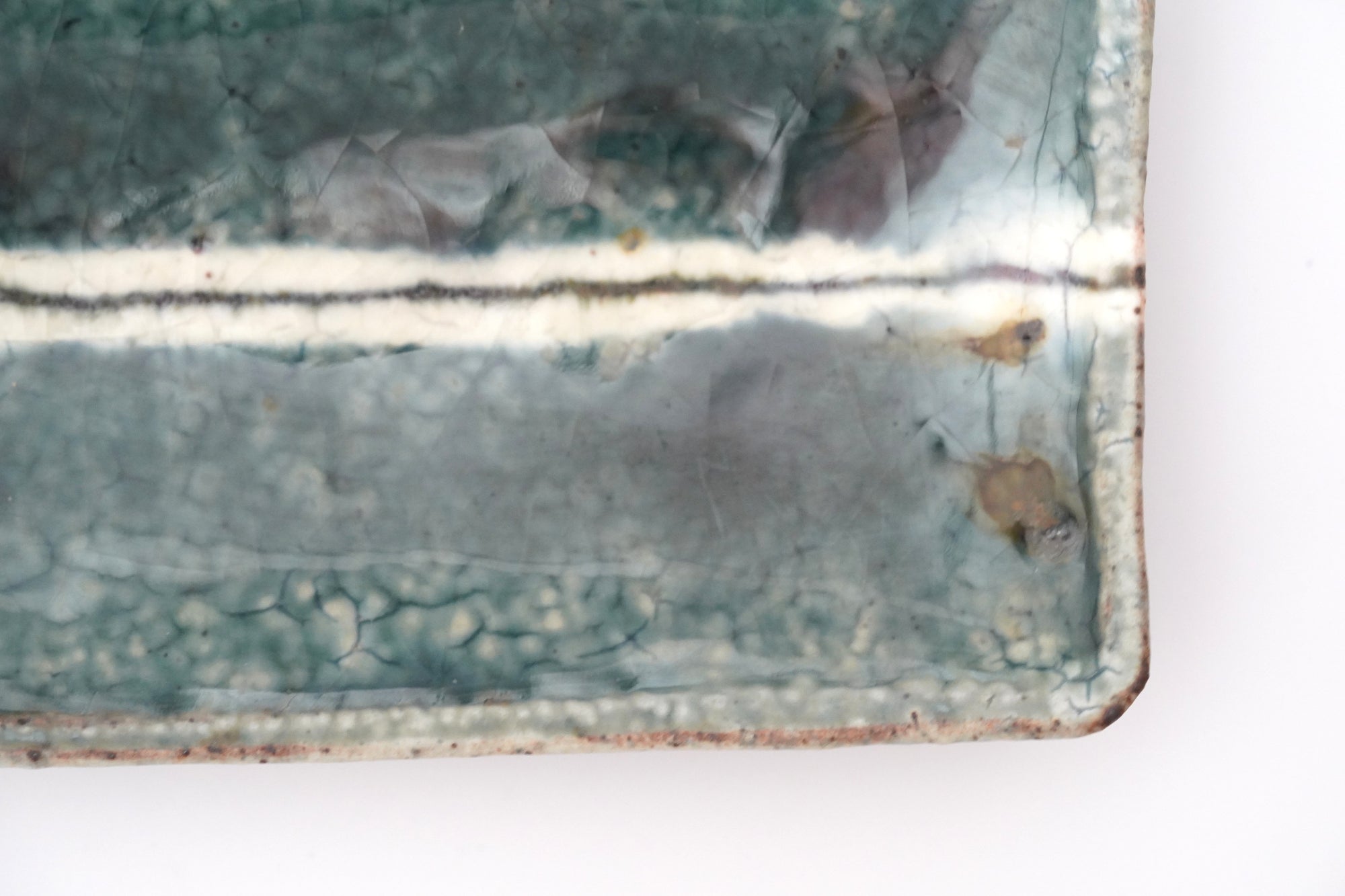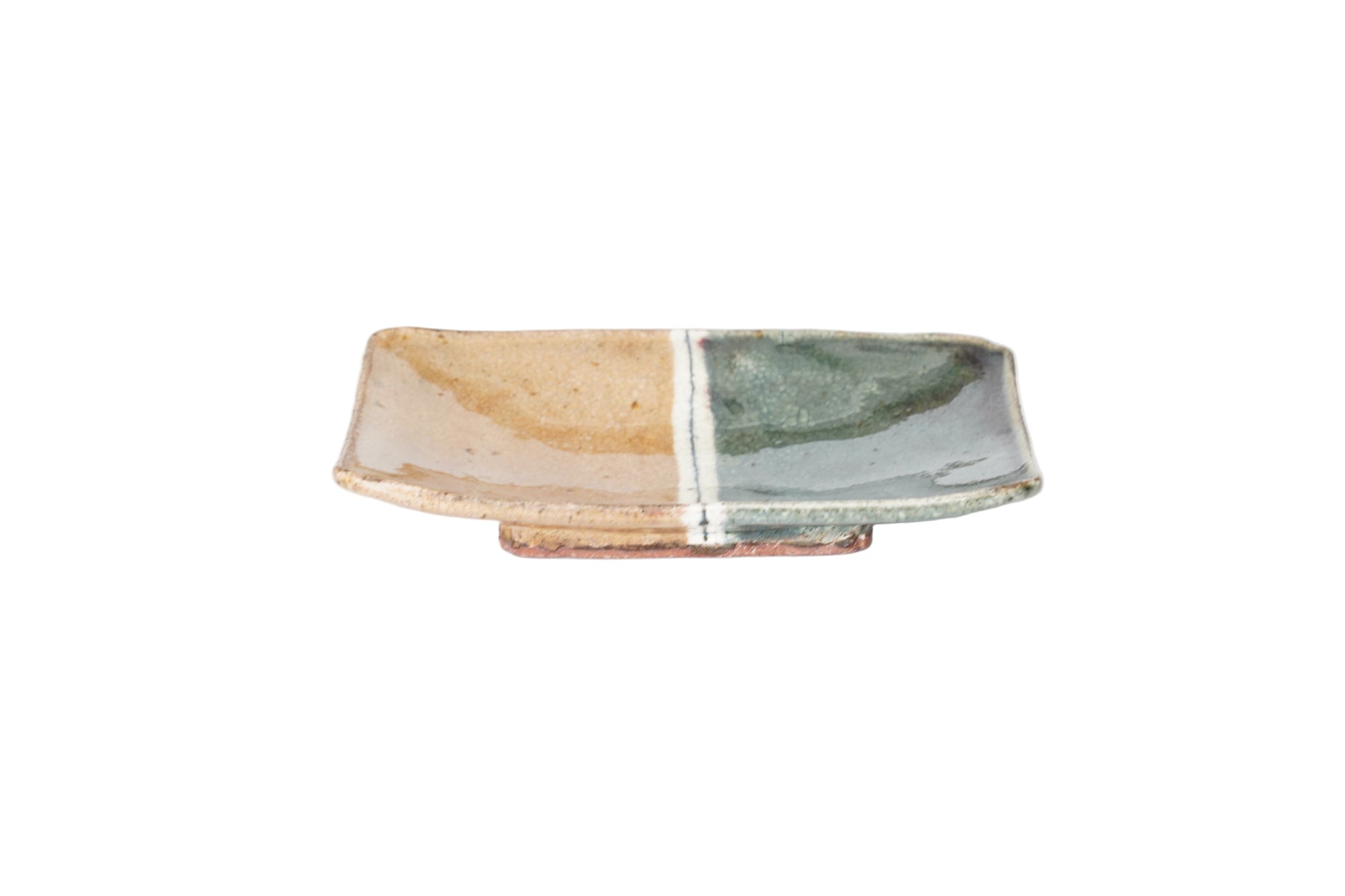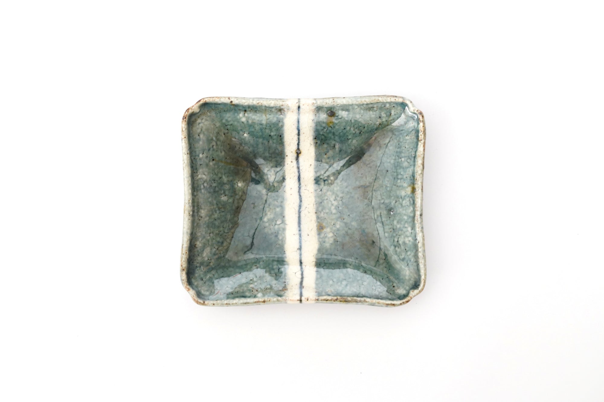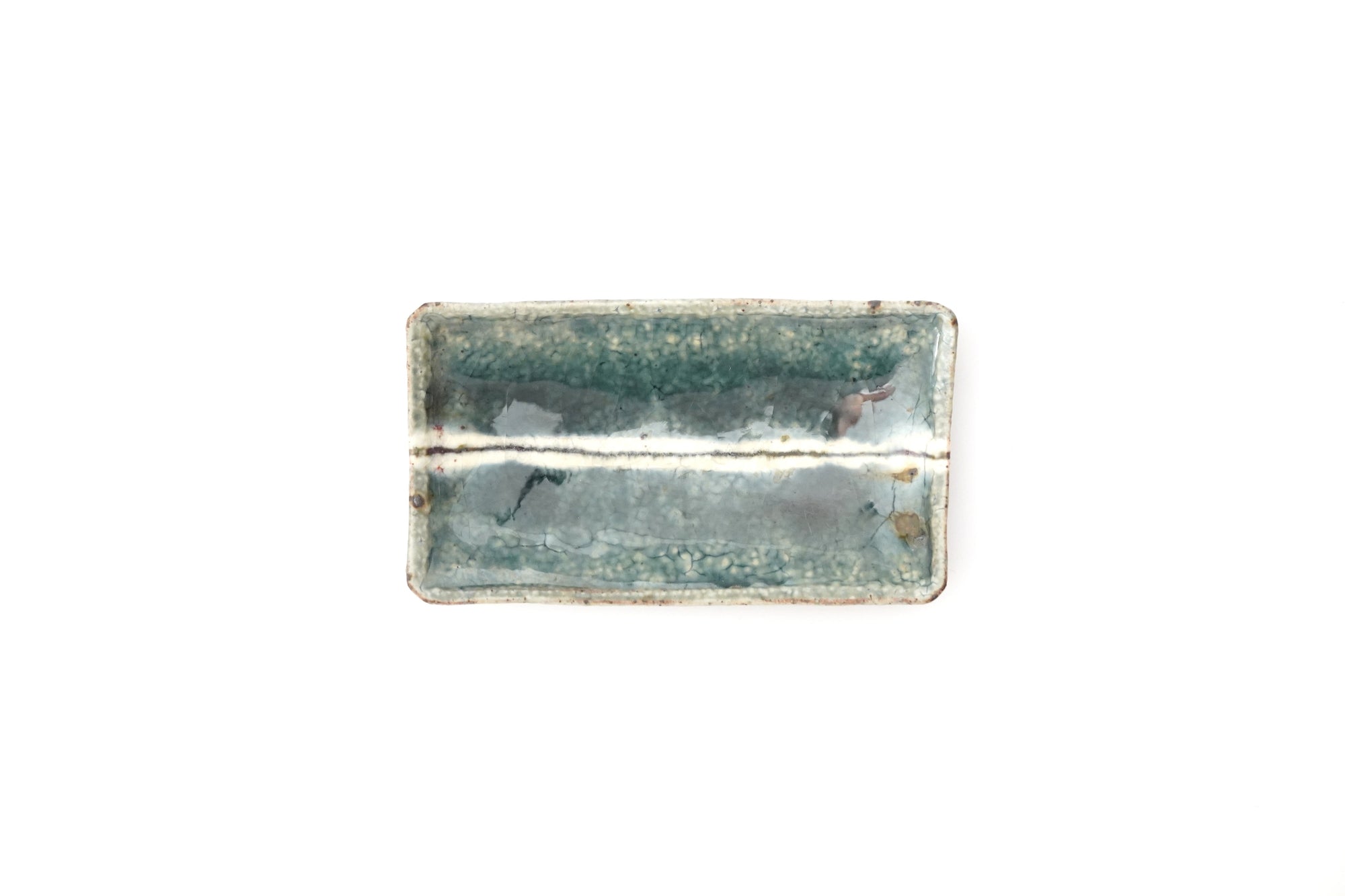 【杉本太郎】4.5×2.5寸角皿 中線緑