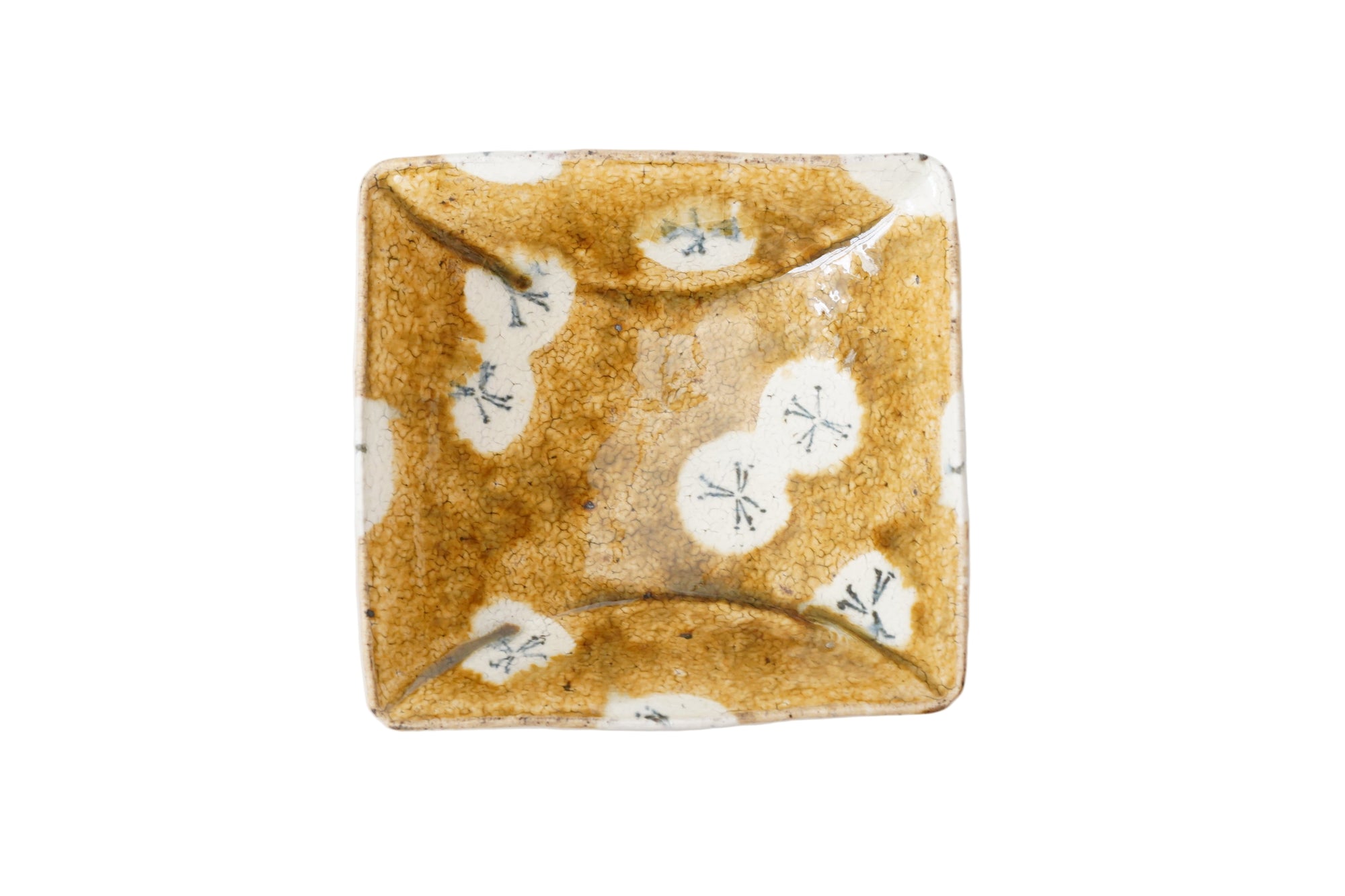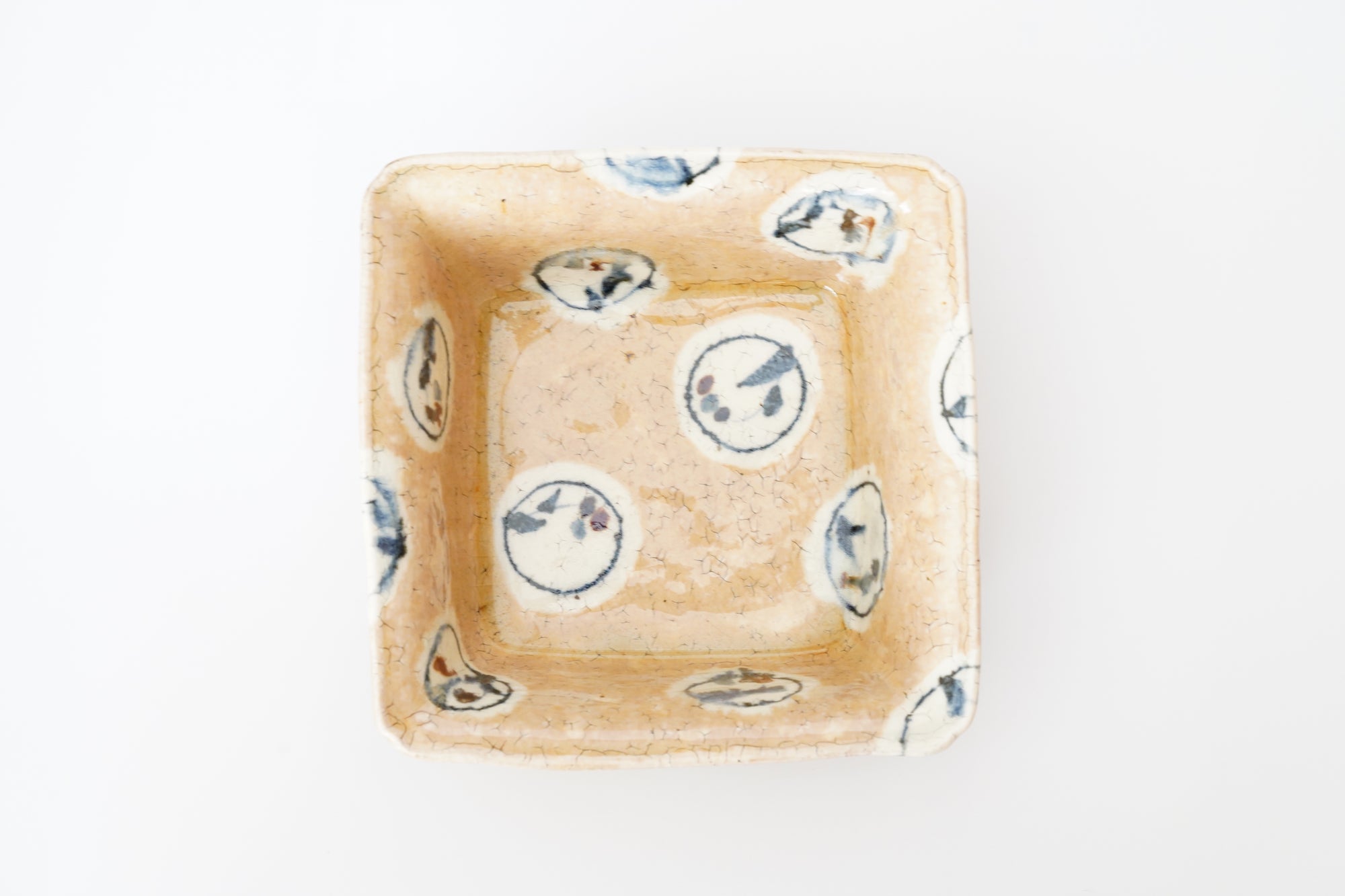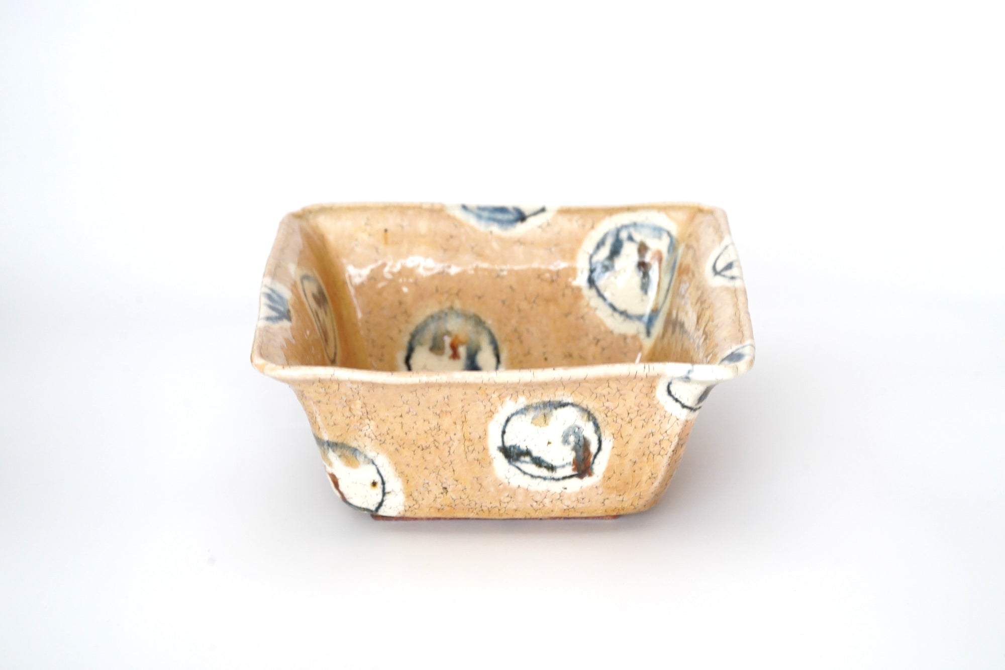 【杉本太郎】6.5寸四方鉢 黄丸文