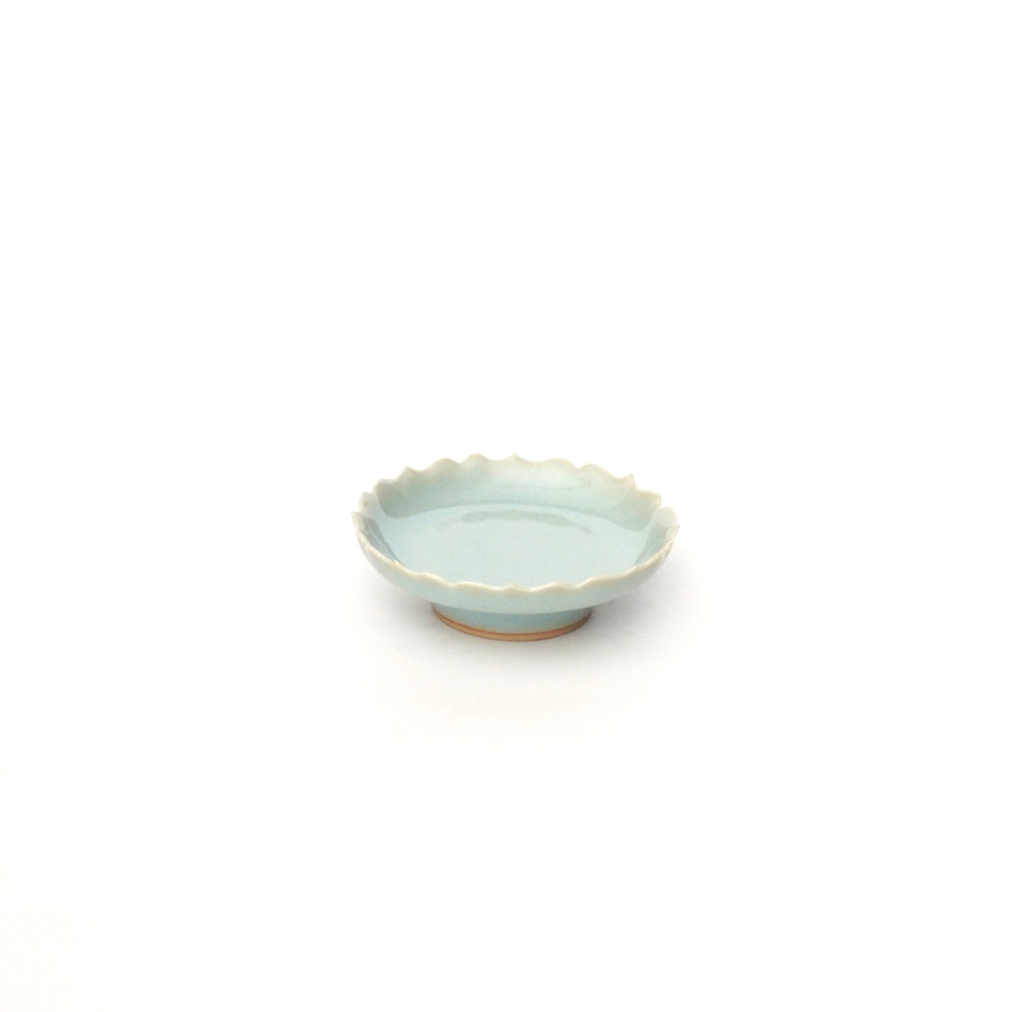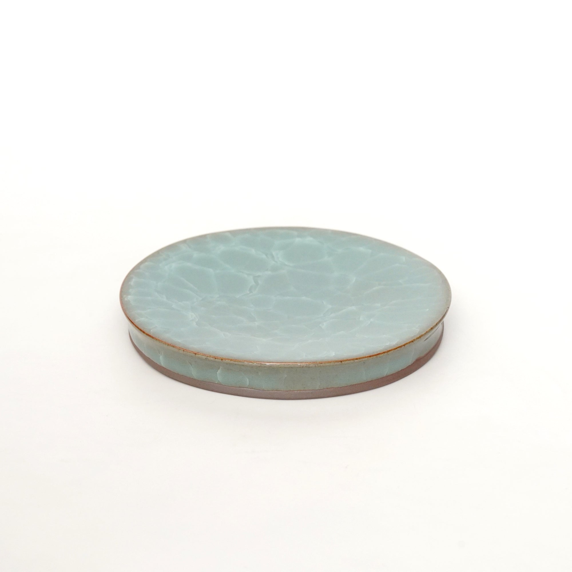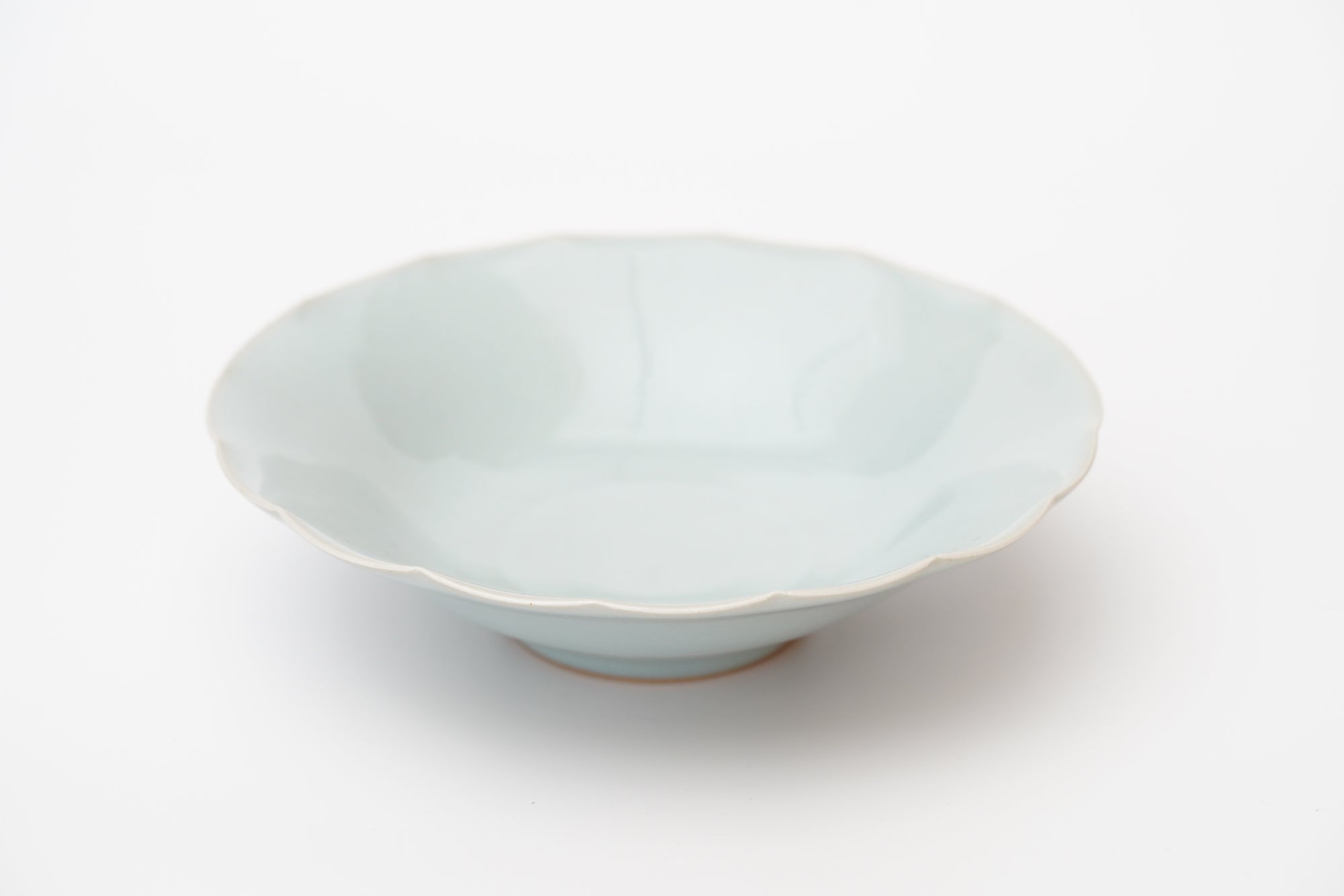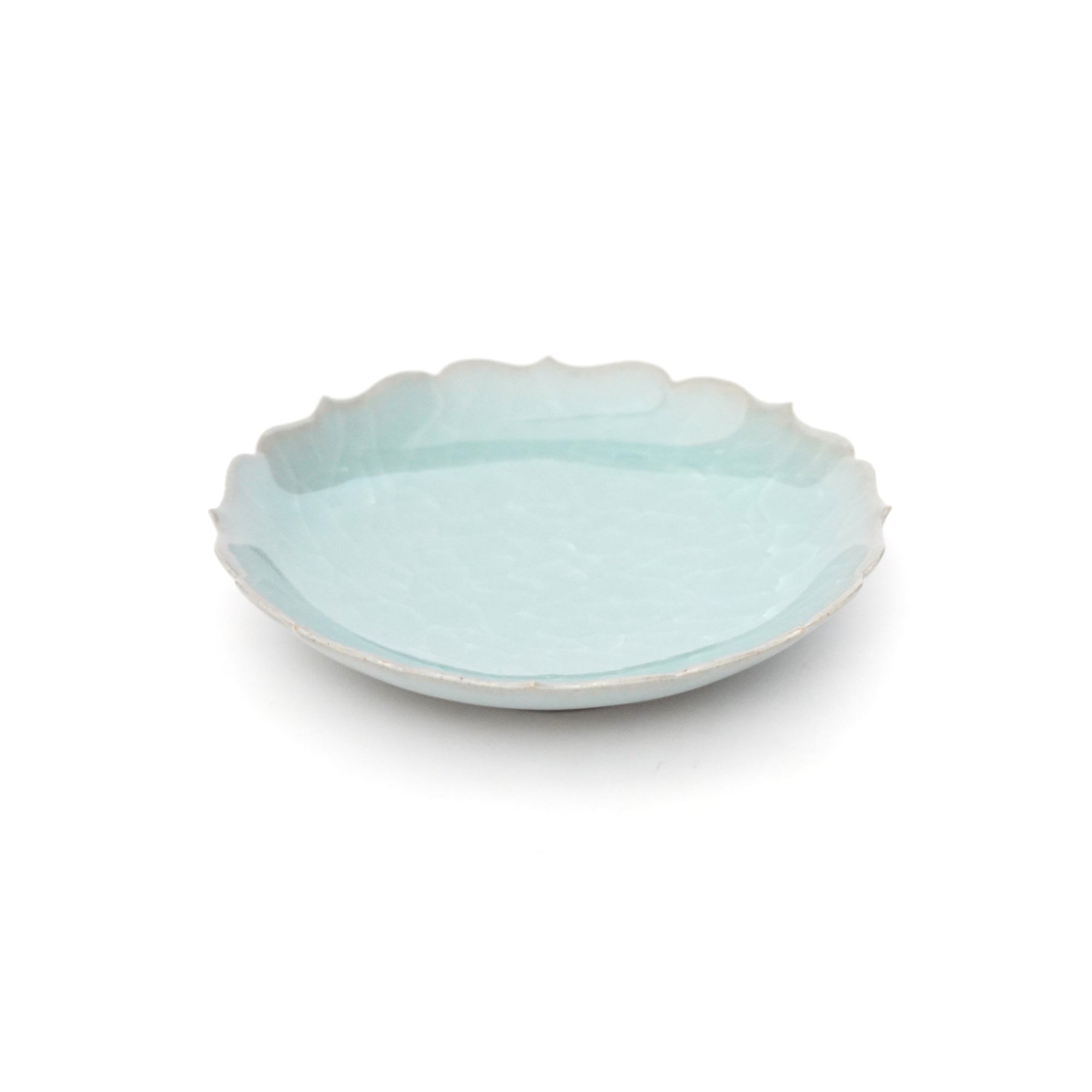 The pale and gentle color of the blue porcelain and the beautiful ice fissures are delicate and beautifully complement the dishes.