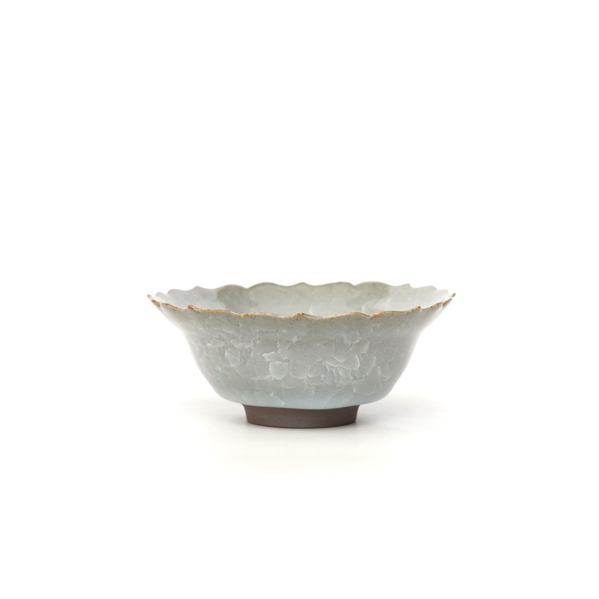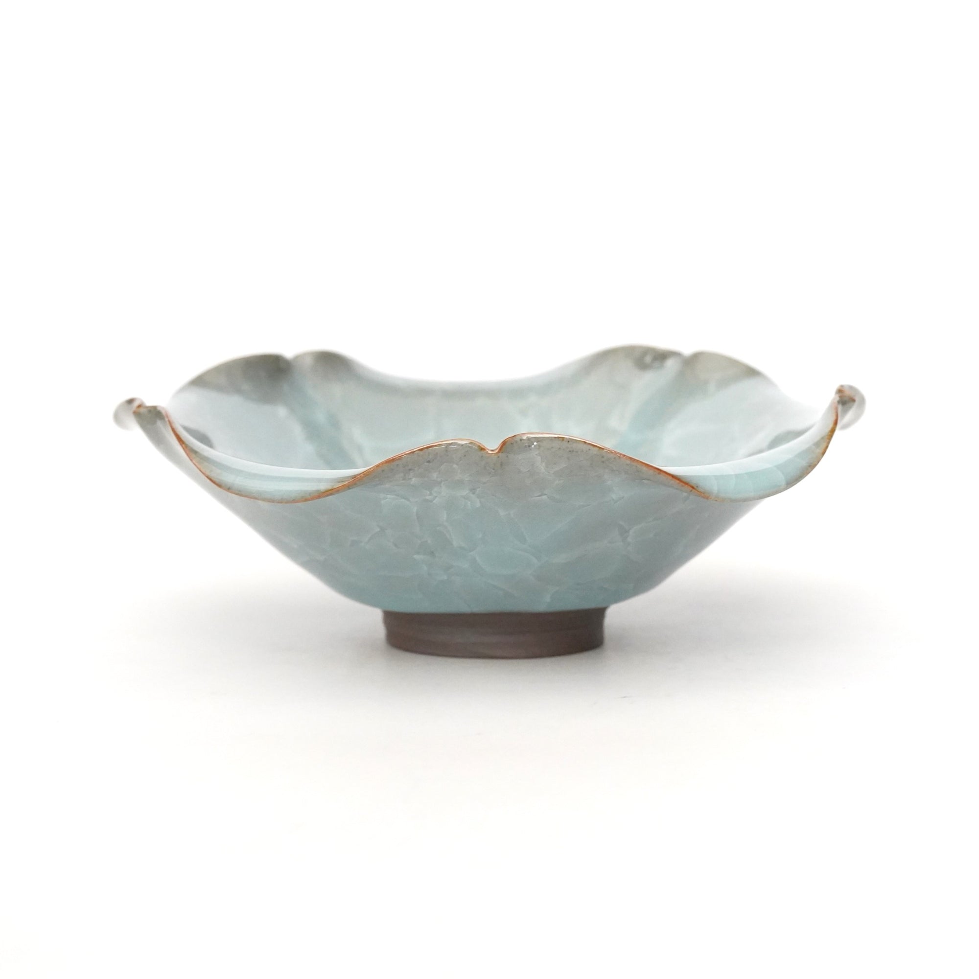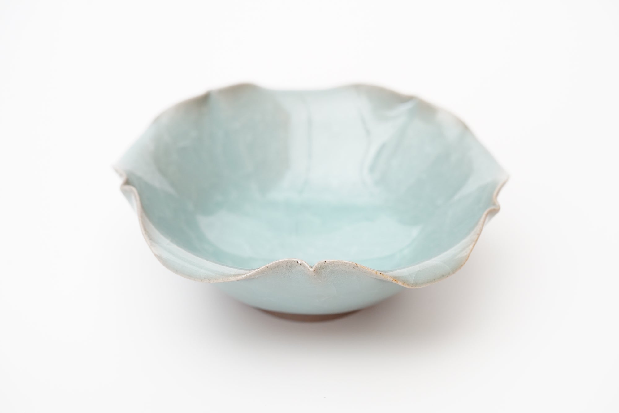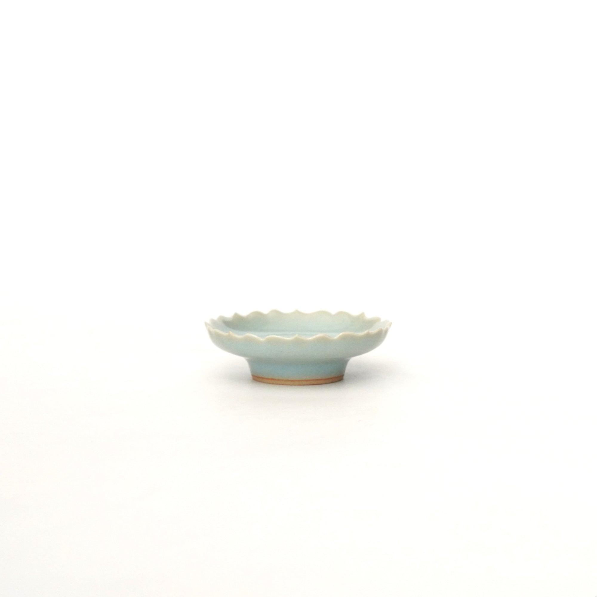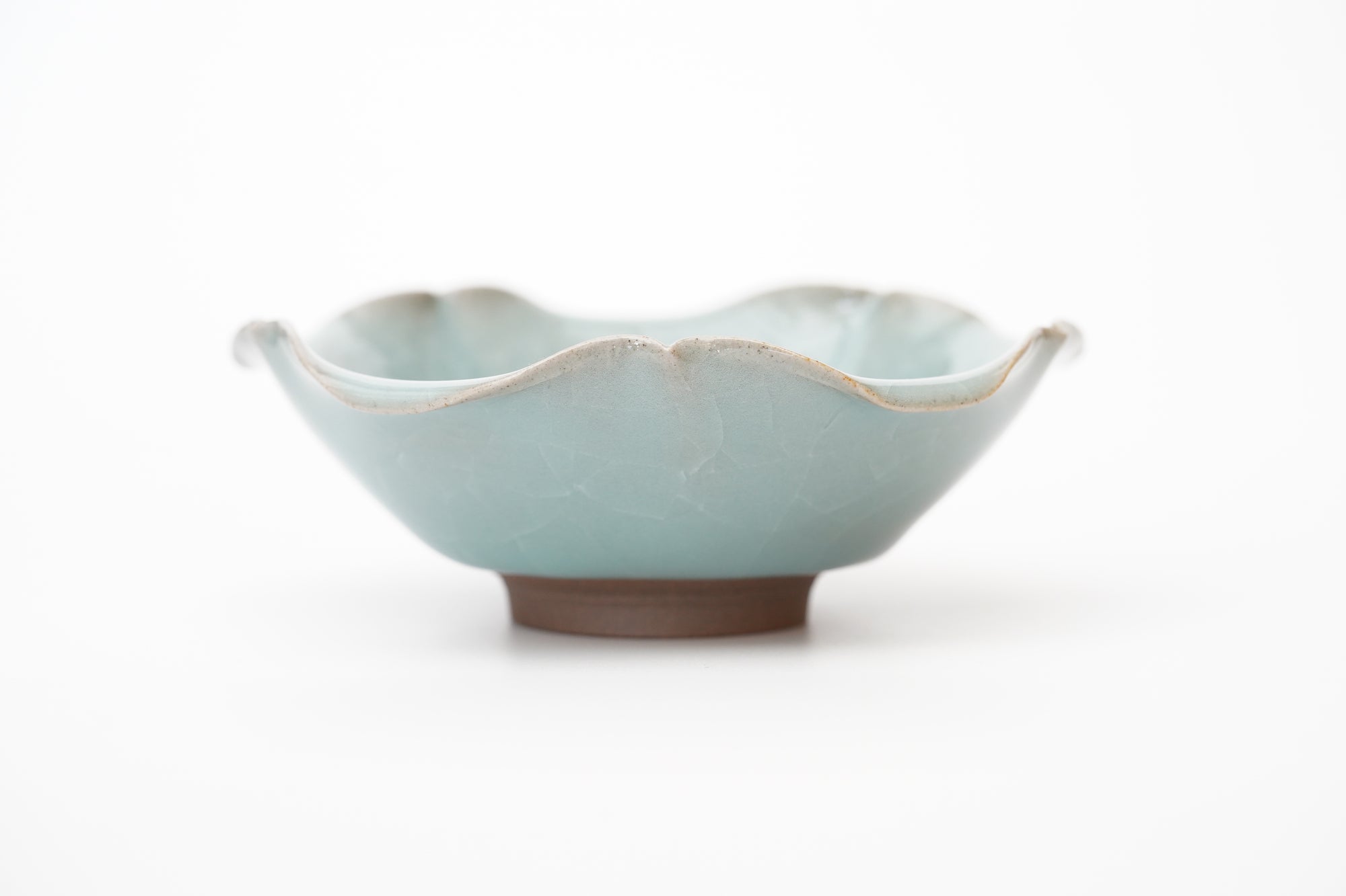 The pale and gentle color of the blue porcelain and the beautiful ice fissures are delicate and beautifully complement the dishes.