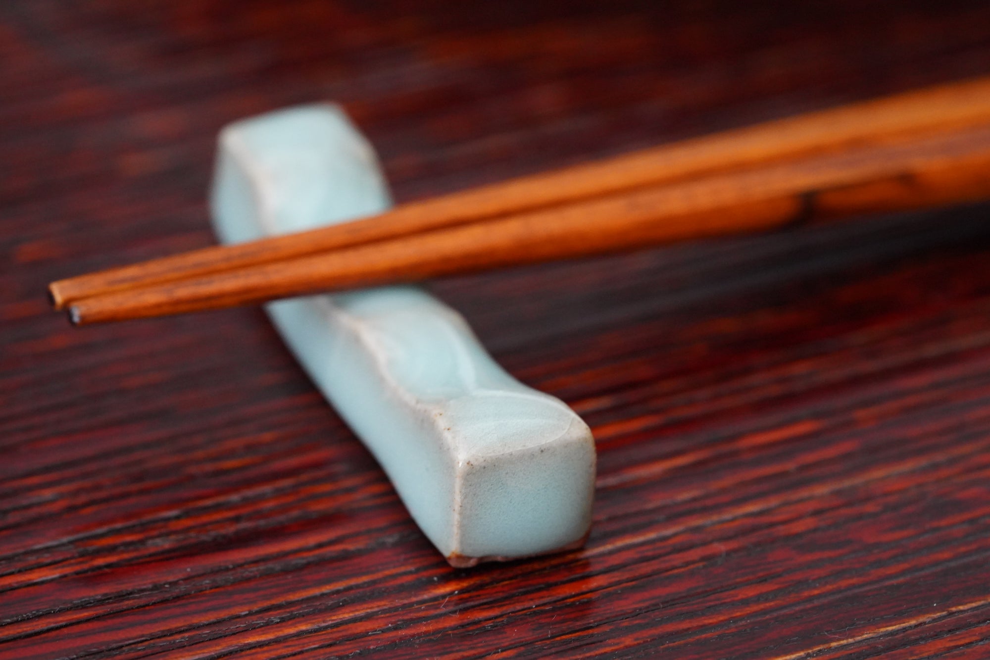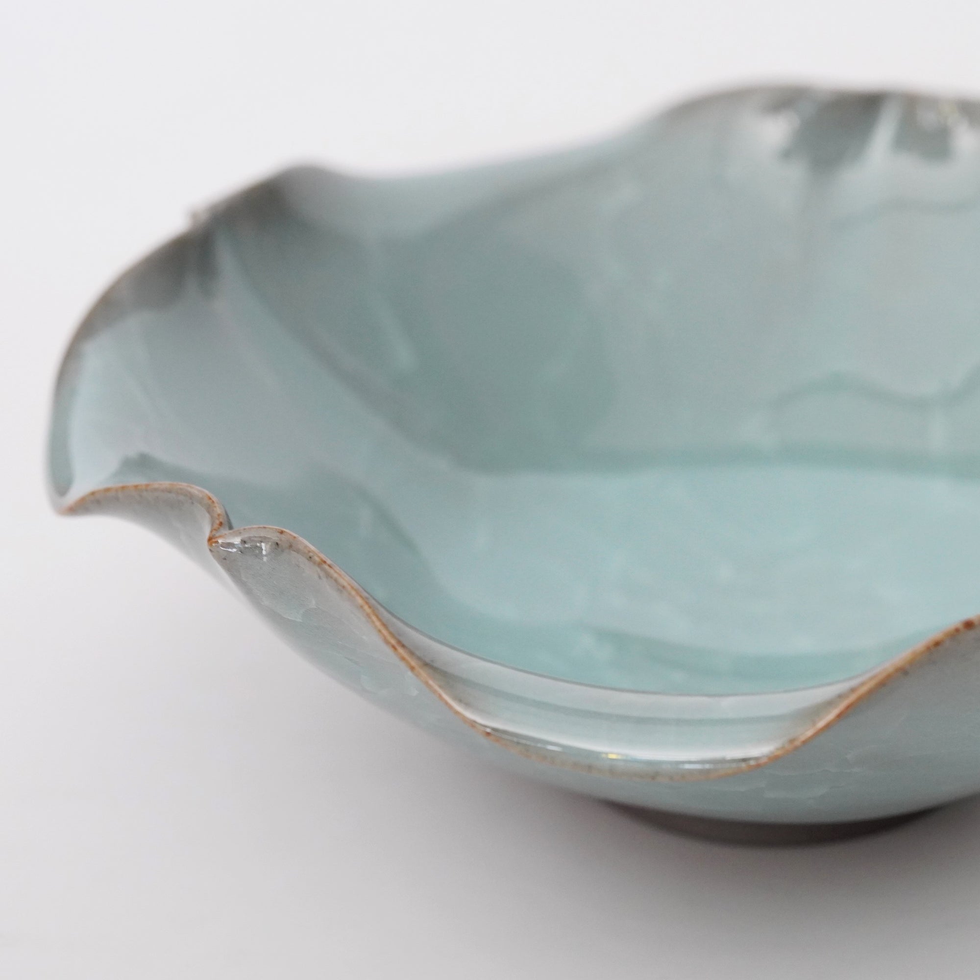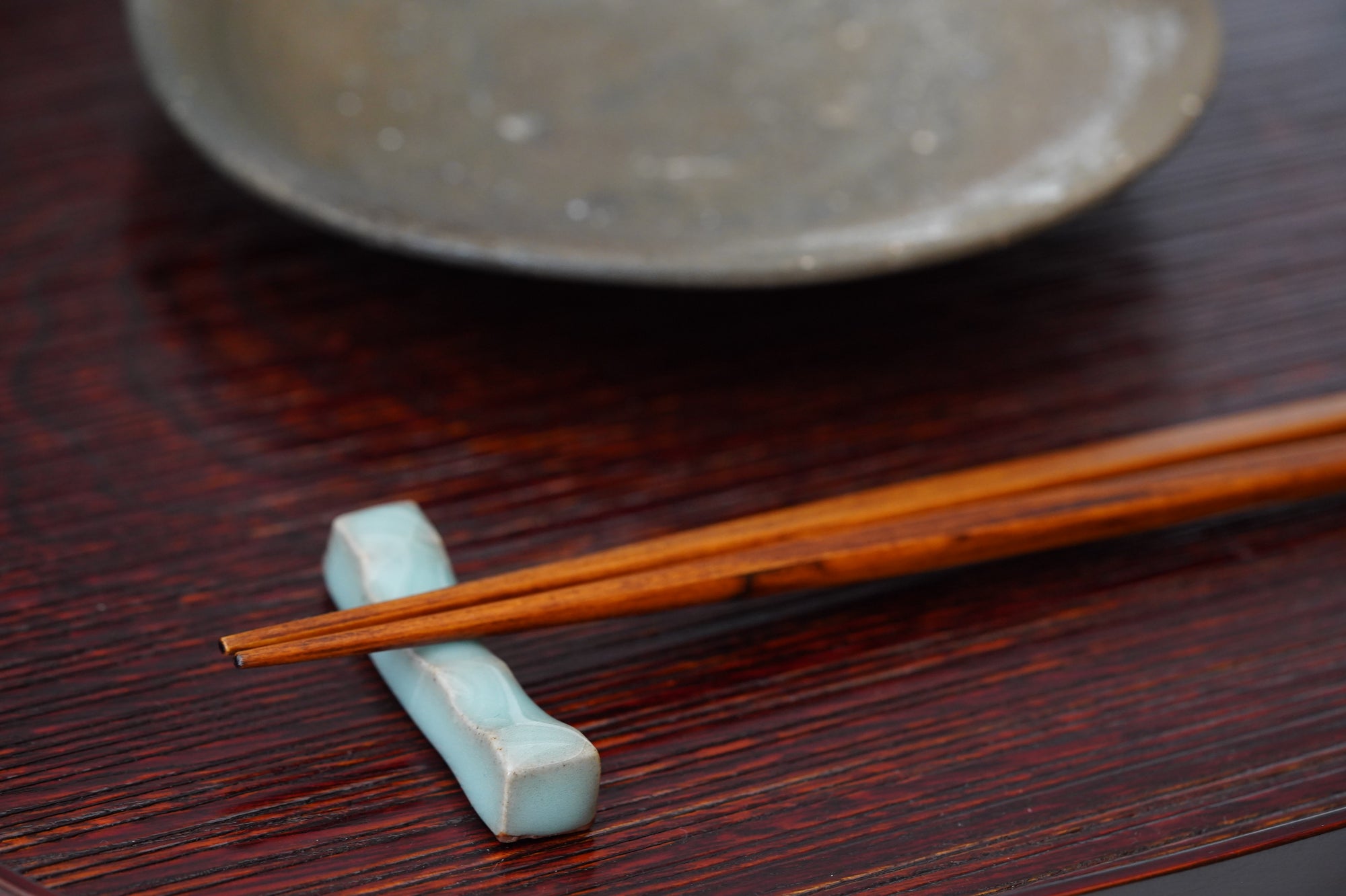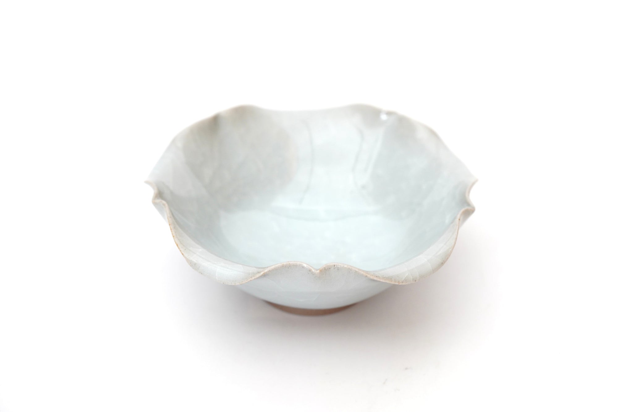 The pale and gentle color of the blue porcelain and the beautiful ice fissures are delicate and beautifully complement the dishes.