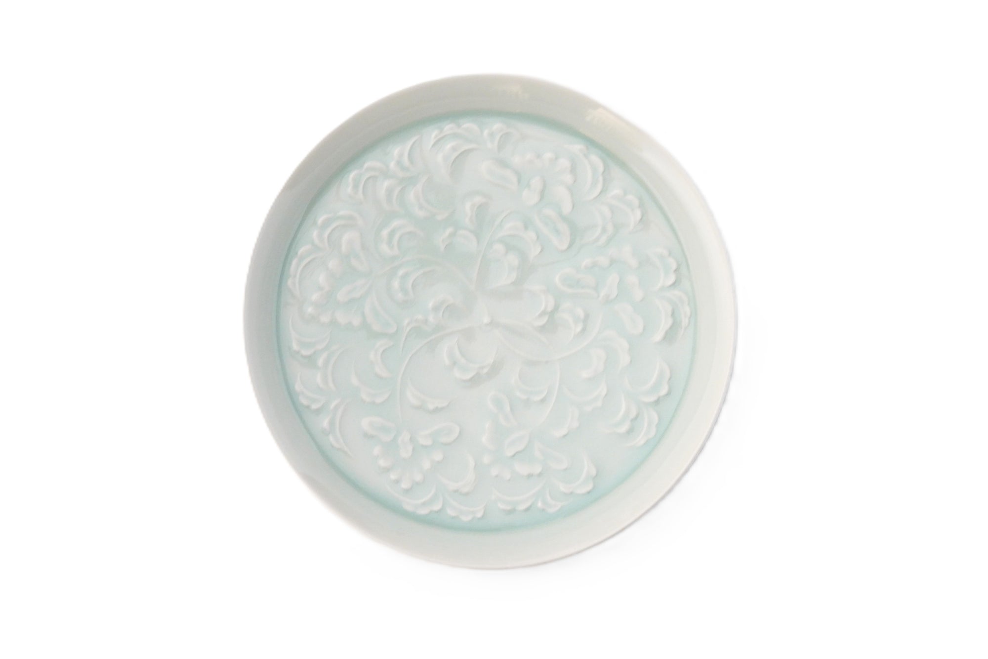 【川瀬竹秋】青白磁彫花文皿(A-01)