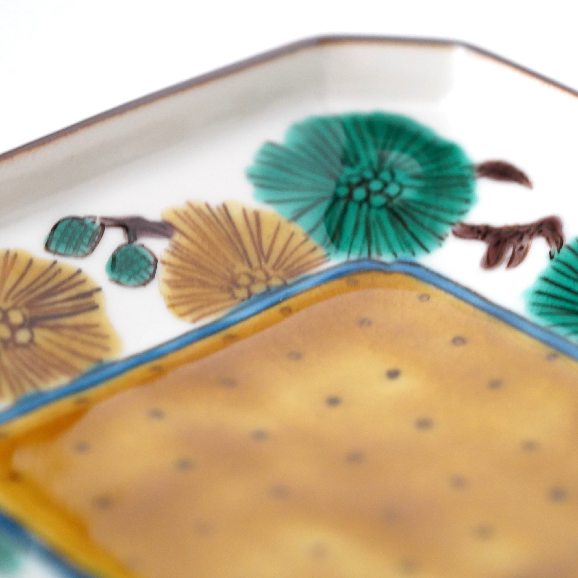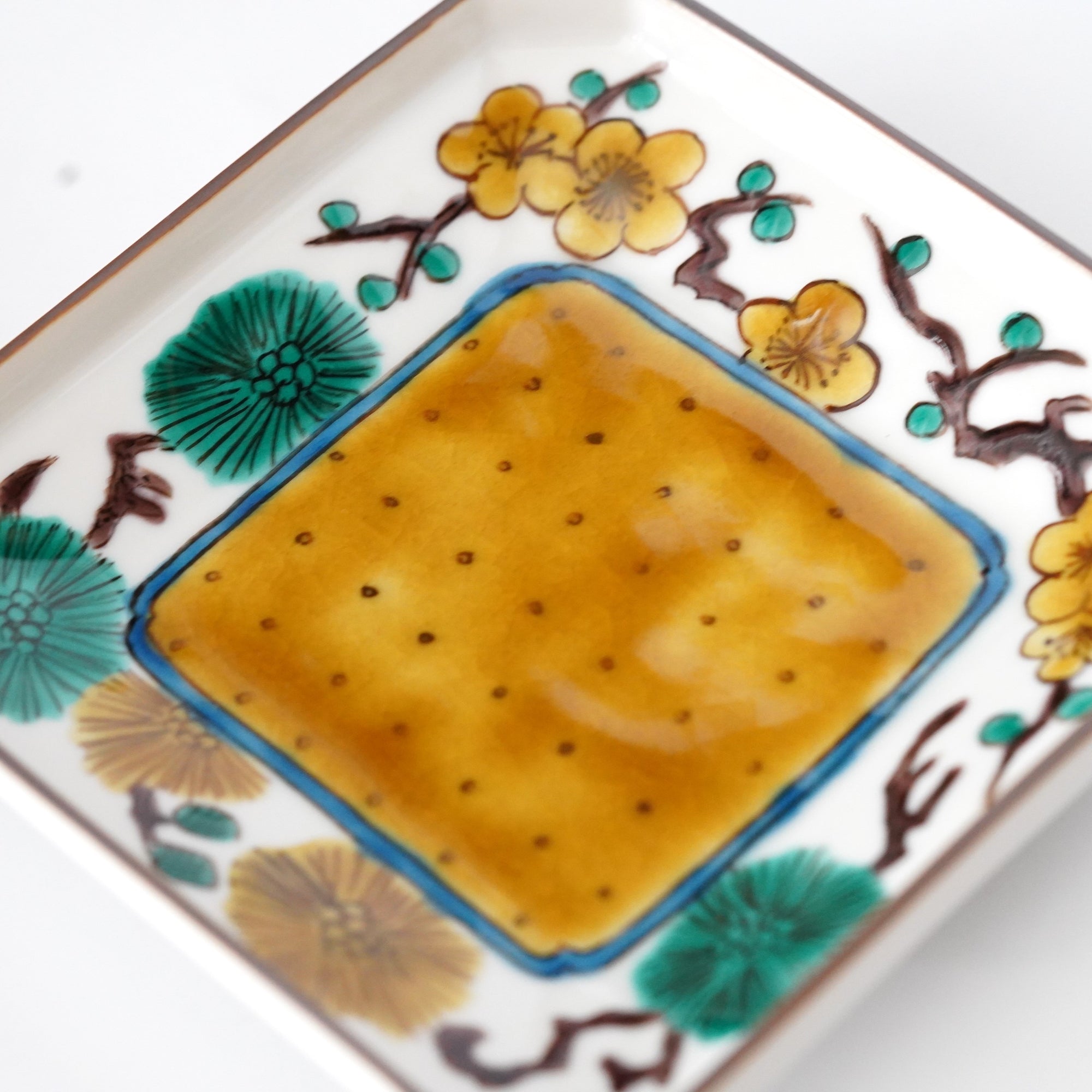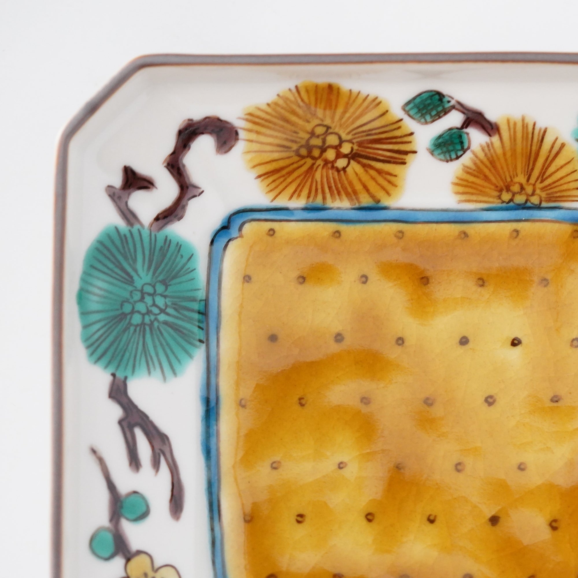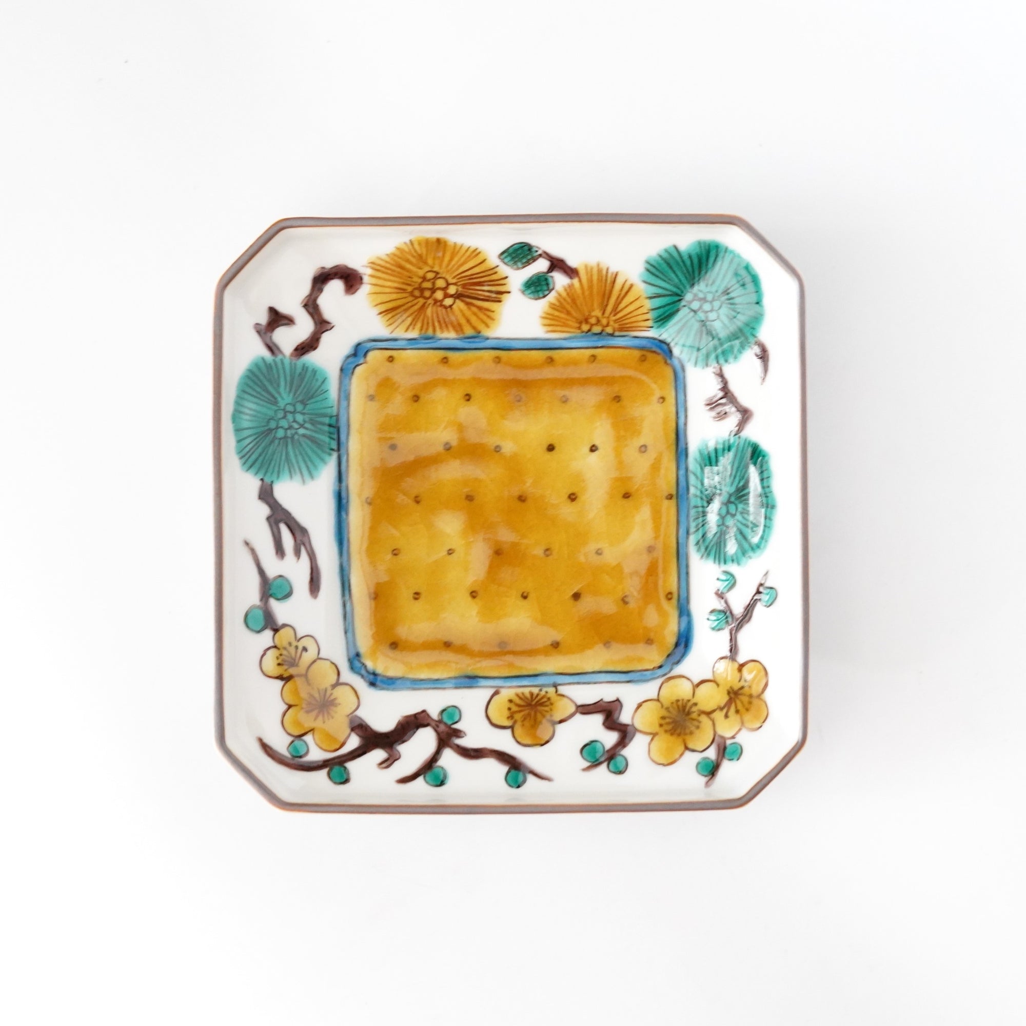 松に梅文様隅切四寸角皿