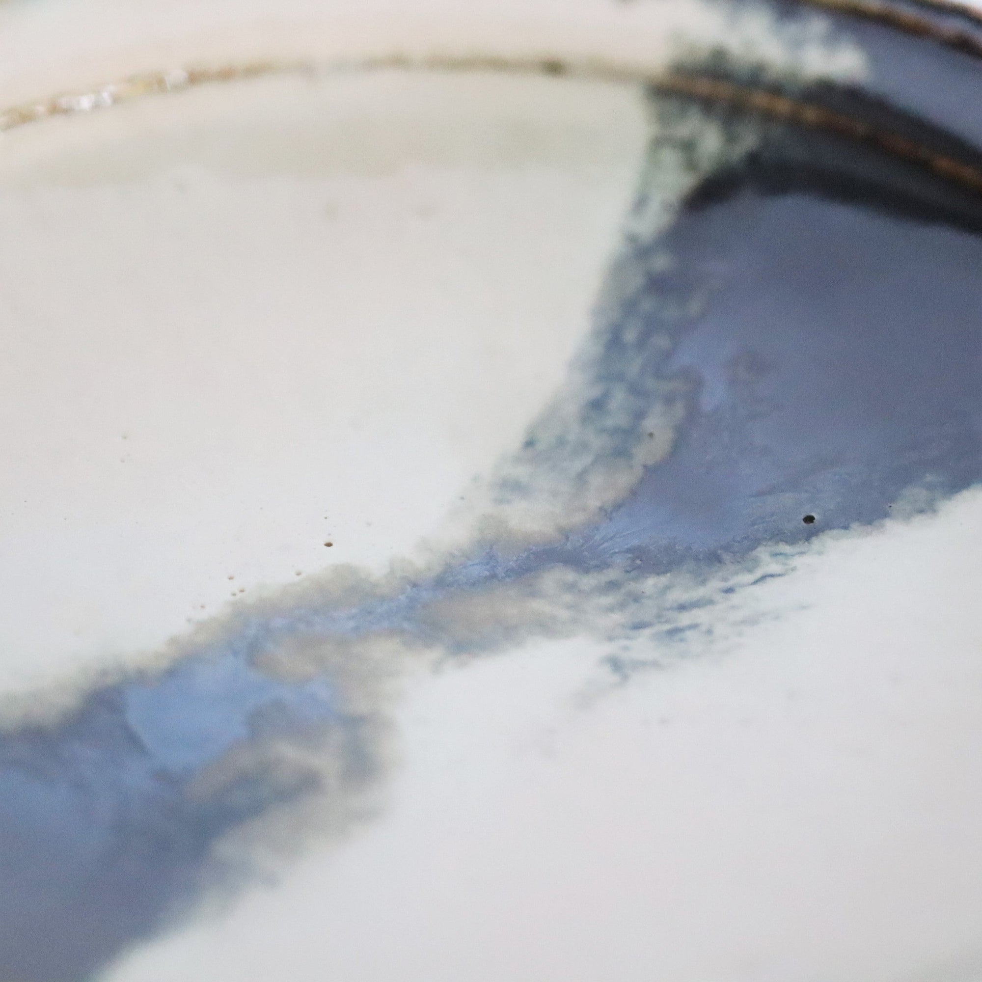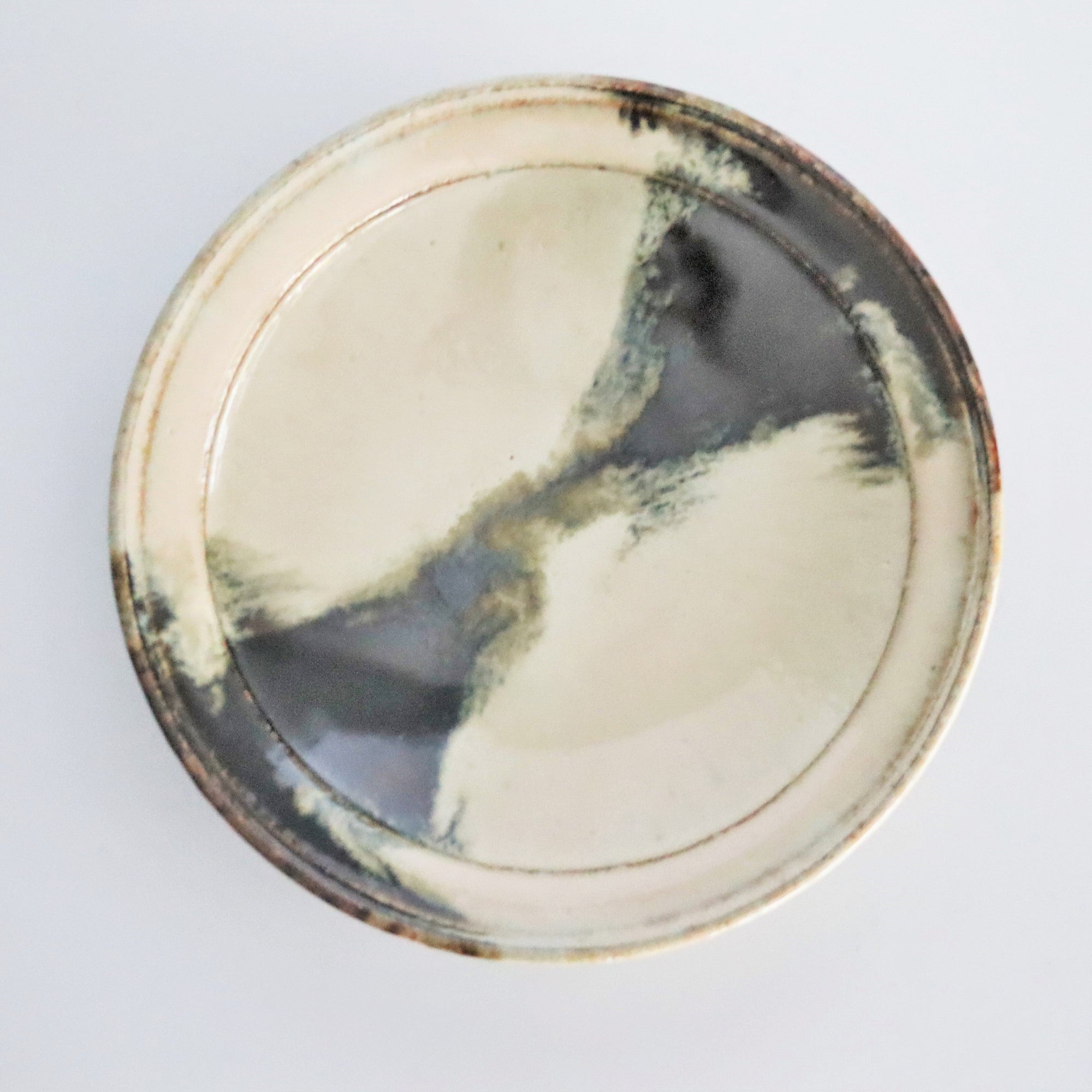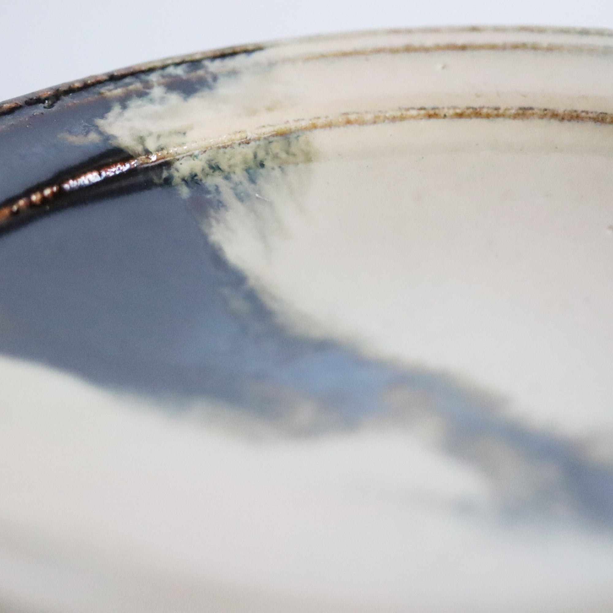 乳浊的稻草灰釉和铁釉混合在一起,十分美丽。